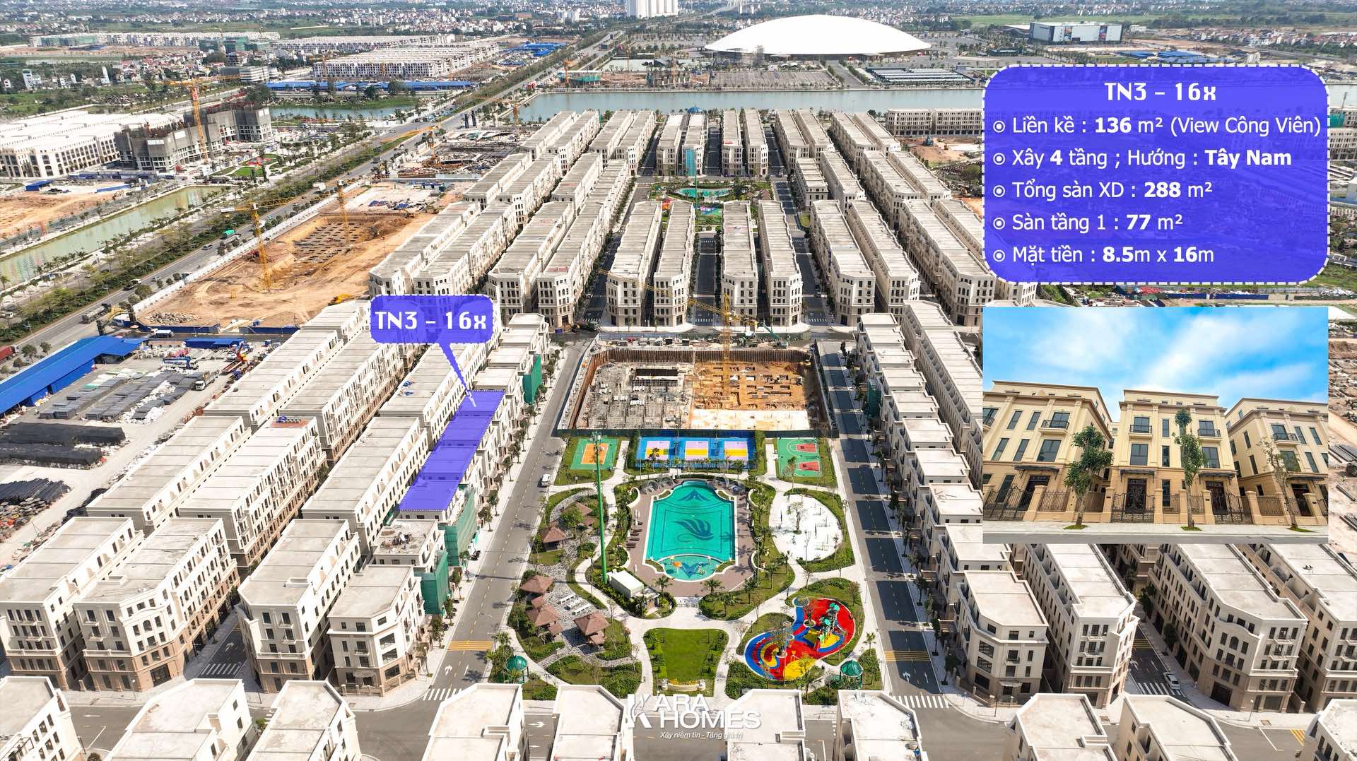 Song Lập 136m² Thiên Nga TN3-16x - View Công Viên – Sở Hữu Vị Trí Đẹp Hiếm Tại Vinhomes Cổ Loa