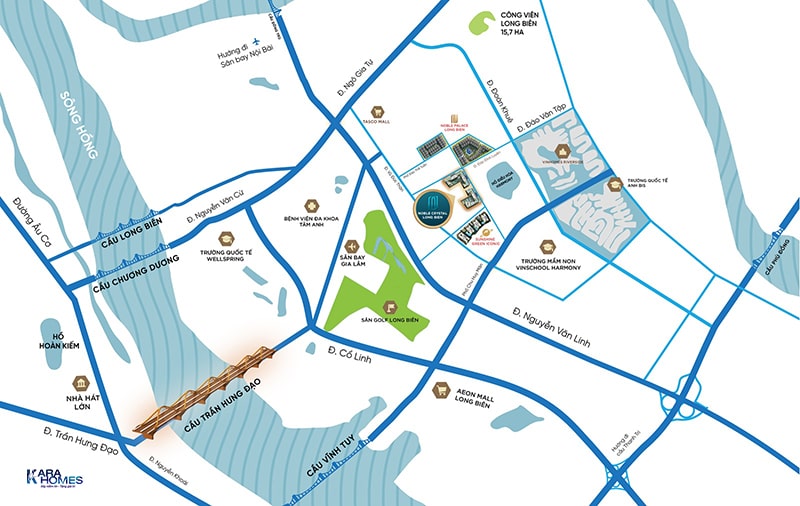 Tọa độ vị trí chiến lược của Noble Crystal Long Biên WorldHotels Residences
