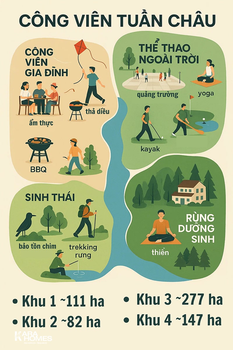 Một trong những trải nghiệm đáng thử nhất khi đi bằng đường sắt tốc độ cao Hà Nội Quảng Ninh là bạn có thể tiếp cận ngay không gian thiên nhiên rộng lớn sau khi xuống ga. Công viên rừng Tuần Châu được quy hoạch theo mô hình du lịch sinh thái – wellness.