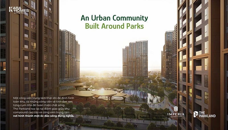 Imperia Ocean City với phân khu The Parkland là ví dụ tiêu biểu nhất của bộ sản phẩm này, với quy mô lớn, mật độ mảng xanh cao, hệ tiện ích cộng đồng phong phú và định hướng “urban park” rõ rệt.