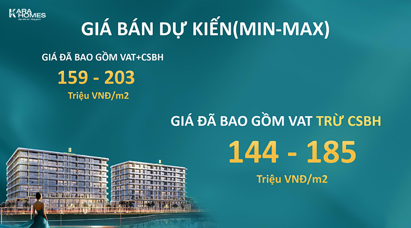 Tuy nhiên để người mua và nhà đầu tư chủ động cân đối tài chính, CĐT cũng đưa ra mức giá dự kiến từ 144 triệu/m² - 185 triệu/ m² làm cơ sở tham khảo.