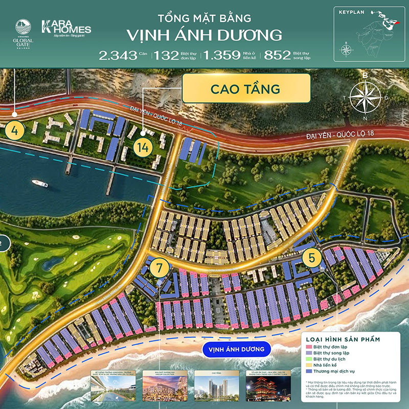 Giai đoạn 1 dự kiến mở bán 2 tiểu phân khu chính thuộc phân khu Châu Mỹ Vinhomes Global Gate Hạ Long, cụ thể: