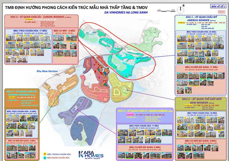 Theo thông tin quy hoạch dự kiến, dự án được chia thành 5 phân khu chủ đề mang cảm hứng kiến trúc từ các châu lục trên thế giới. Mỗi phân khu không chỉ khác biệt về phong cách kiến trúc mà còn có cơ cấu sản phẩm riêng.
