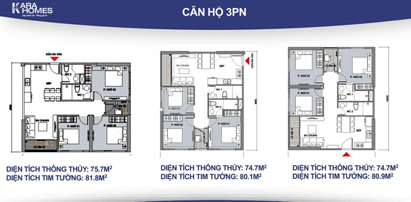 Căn 2PN có diện tích từ 75 - 95 m², phù hợp cho gia đình nhỏ (vợ chồng + 1 con) hoặc nhóm người mua nhà hướng đến “một căn cho cả giai đoạn phát triển” của gia đình.