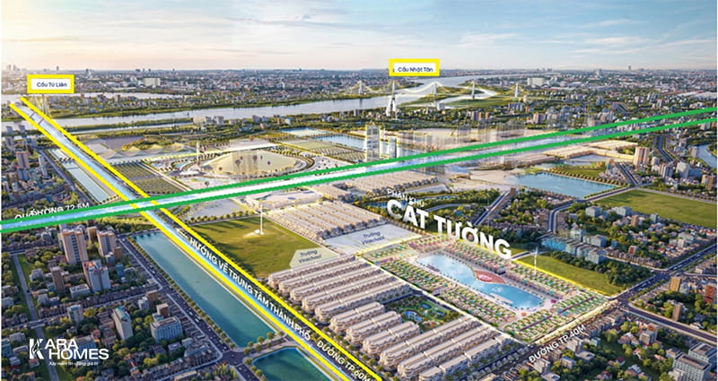 Cát Tường được đánh giá là phân khu có khả năng tiếp cận cầu Tứ Liên nhanh nhất, thông qua trục đường quy hoạch 60m.