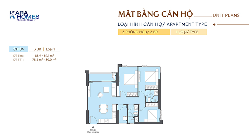 - 3PN: ~ 99 – 109 m², Diện tích lớn, số lượng giới hạn, hướng đến gia đình đa thế hệ sống nội đô.