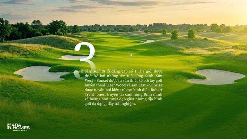 Sân West - Sunset được kiến tạo bởi huyền thoại Tiger Woods thông qua thương hiệu TGR Design với hơn 82 danh hiệu PGA Tour và 15 danh hiệu major trong sự nghiệp. Tiger Woods mang đến triết lý thiết kế riêng biệt - “golf gắn kết thiên nhiên” - với đề cao sự hài hòa giữa địa hình tự nhiên, nghệ thuật chiến thuật và cảm xúc của người chơi.