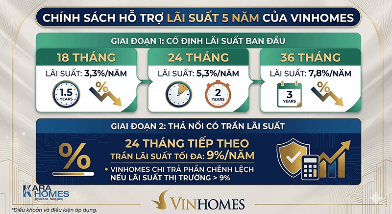 Vinhomes triển khai chính sách hỗ trợ lãi suất 5 năm – “5 năm không lo lãi suất” như một cơ chế tài chính giúp người mua chủ động kiểm soát toàn bộ chi phí vay trong giai đoạn đầu sở hữu bất động sản.
