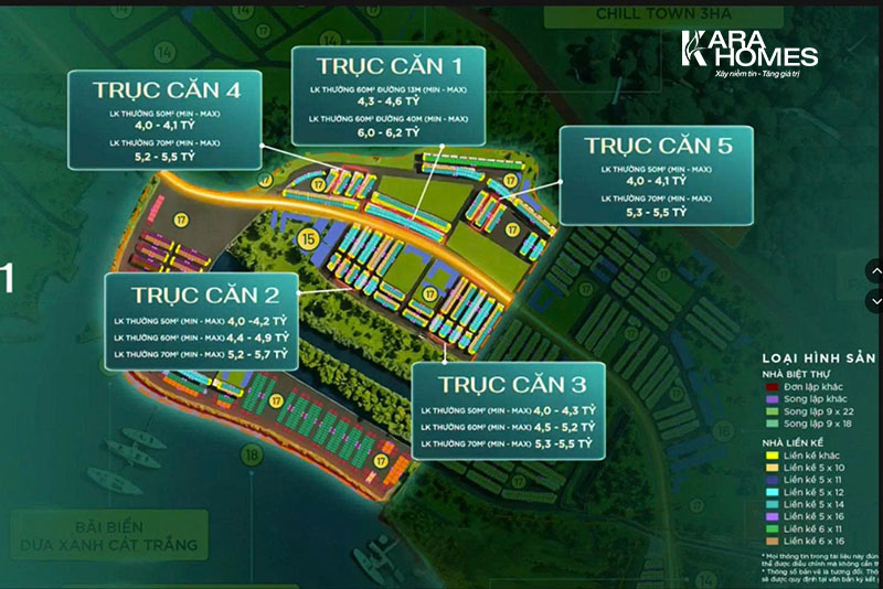 - Nhà liền kề (5.983 căn): Diện tích linh hoạt từ 50m², 60m² đến 180m².