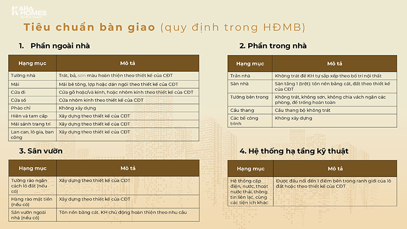 Tiêu chuẩn bàn giao biệt thự Ngọc Trai theo HĐMB