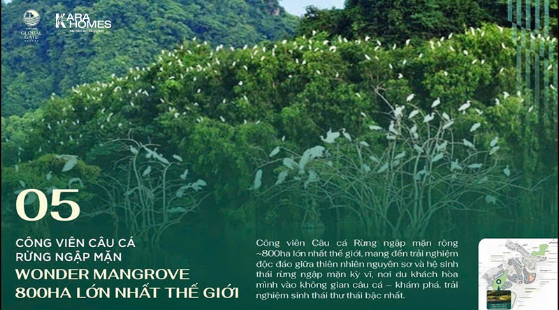 Bên cạnh đó, dự án còn được bao phủ bởi hệ sinh thái tự nhiên đa dạng gồm rừng ngập mặn, mặt nước và cảnh quan ven vịnh. Sự kết hợp này không chỉ tạo môi trường sống trong lành mà còn mang lại trải nghiệm gần gũi thiên nhiên – yếu tố ngày càng được ưa chuộng trong xu hướng đô thị hiện đại.
