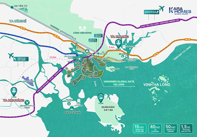 - Nằm gần các đầu mối giao thương quan trọng như Cảng Cái Lân, Cảng Lạch Huyện, giúp mở rộng khả năng phát triển dịch vụ và logistics trong khu vực