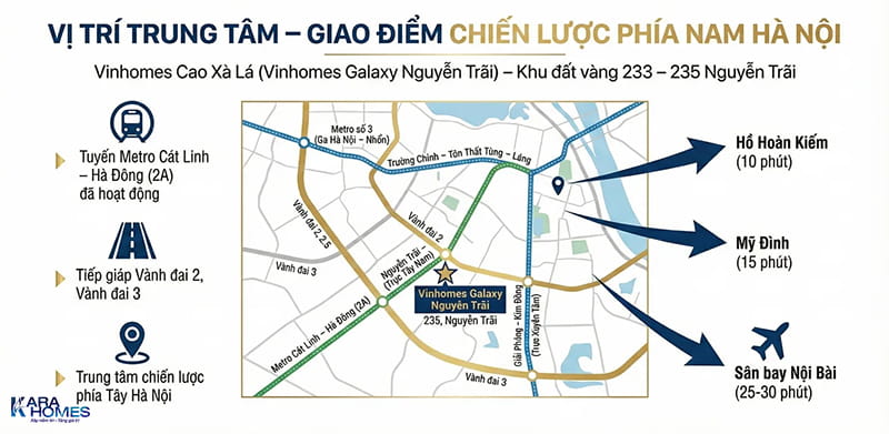 Vinhomes Cao Xà Lá tọa lạc trên trục Nguyễn Trãi – một trong những tuyến huyết mạch quan trọng bậc nhất khu Tây Nam Hà Nội.