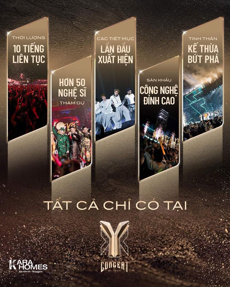Y Concert 2025 sẽ biến đêm nhạc thành một “vũ trụ giải trí” chưa từng có trong lịch sử showbiz Việt, nơi mỗi khoảnh khắc, mỗi tiếng hát, mỗi ánh đèn đều tràn đầy tinh thần sẻ chia, gắn kết và lan tỏa năng lượng tích cực, hứa hẹn mang đến cho khán giả một trải nghiệm âm nhạc trọn vẹn, rực rỡ và khó quên.