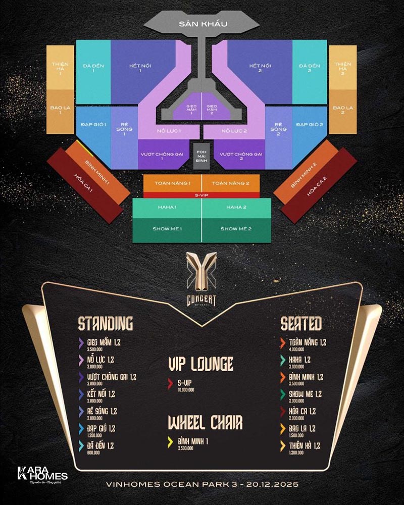 Sơ đồ chỗ ngồi và giá vé tại Y Concert Vinhomes Ocean Park 3